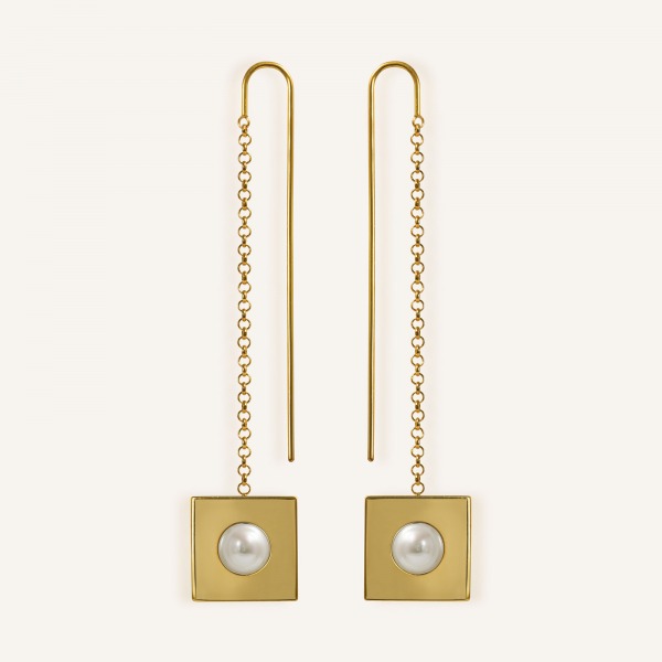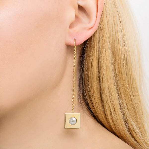 Стильные серьги с замком-петлей и подвесом геометрической формы из коллекции Blank добавят современности любому образу