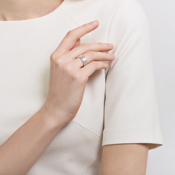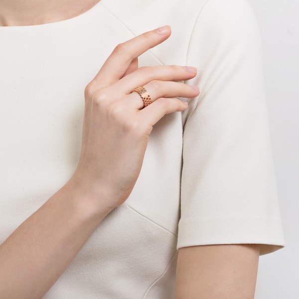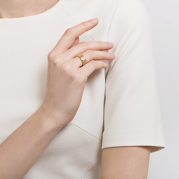 Сочетание геометрии и невесомости орнамента определяет лаконичную красоту этого кольца, добавляя стильный и яркий акцент в любой образ