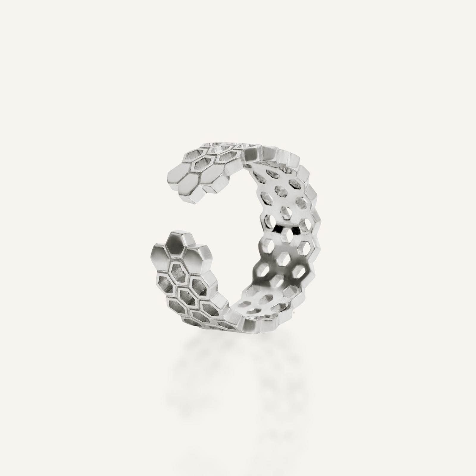 Сочетание геометрии и невесомости орнамента определяет лаконичную красоту этого кольца, а его безразмерная конструкция позволяет изделию подстраиваться под размер вашего пальца, что делает его универсальным для повседневного использования