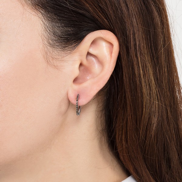 Сочетание геометричных форм и чистых линий придают современный характер классическому дизайну этих серёг, а контрастная дорожка из дымчатых раухтопазов подчеркивает геометрию изделия своим блеском