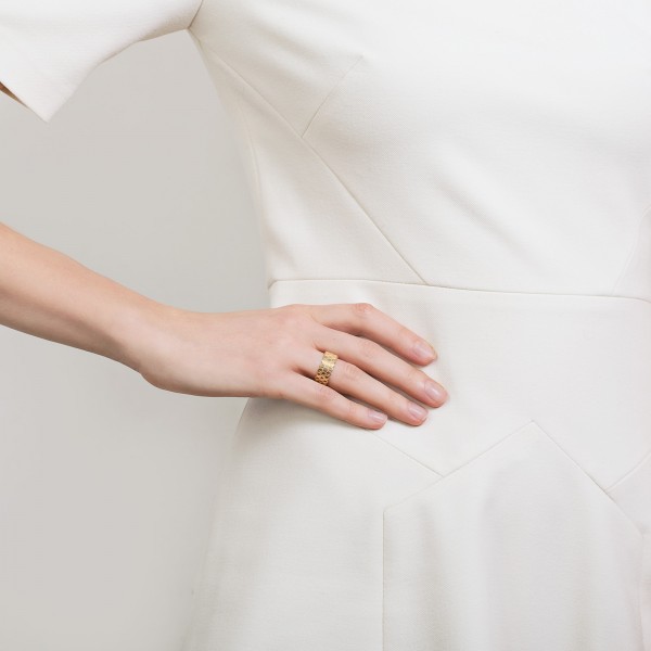Сочетание геометрии и невесомости орнамента определяет лаконичную красоту этого кольца, добавляя стильный и яркий акцент в любой образ