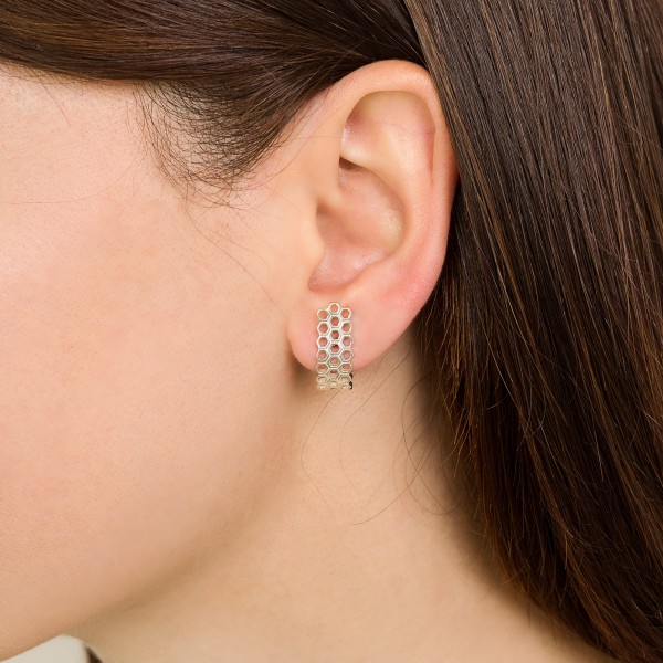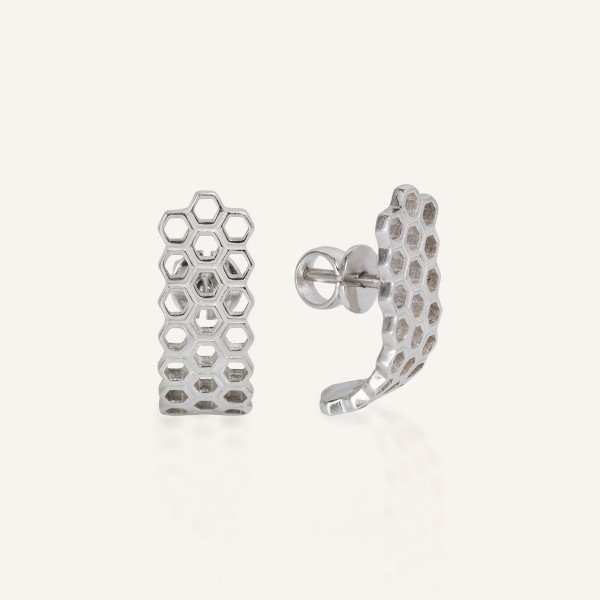 Архитектурные линии и лаконичная "J" форма серёг подчеркивает анатомическую красоту и скрывает несовершенства мочки уха. Серьги оснащены удобным замком-клипсой