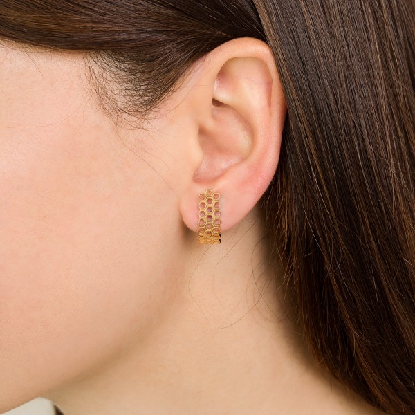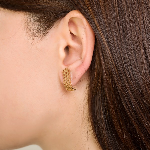 Архитектурные линии и лаконичная "J" форма серёг подчеркивает анатомическую красоту и скрывает несовершенства мочки уха. Серьги оснащены удобным замком-клипсой