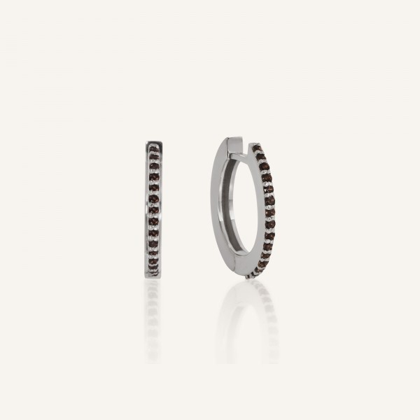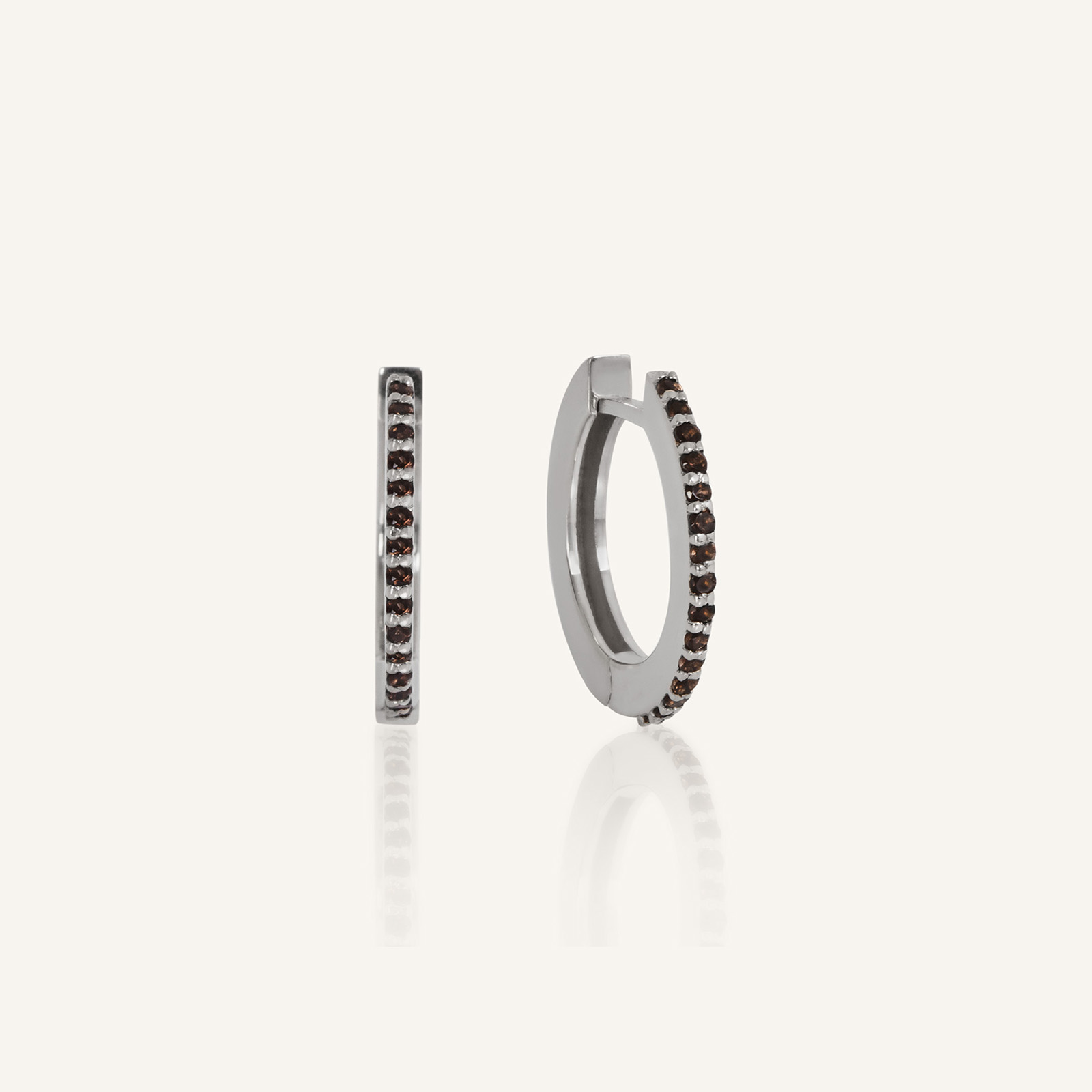 Сочетание геометричных форм и чистых линий придают современный характер классическому дизайну этих серёг, а контрастная дорожка из дымчатых раухтопазов подчеркивает геометрию изделия своим блеском