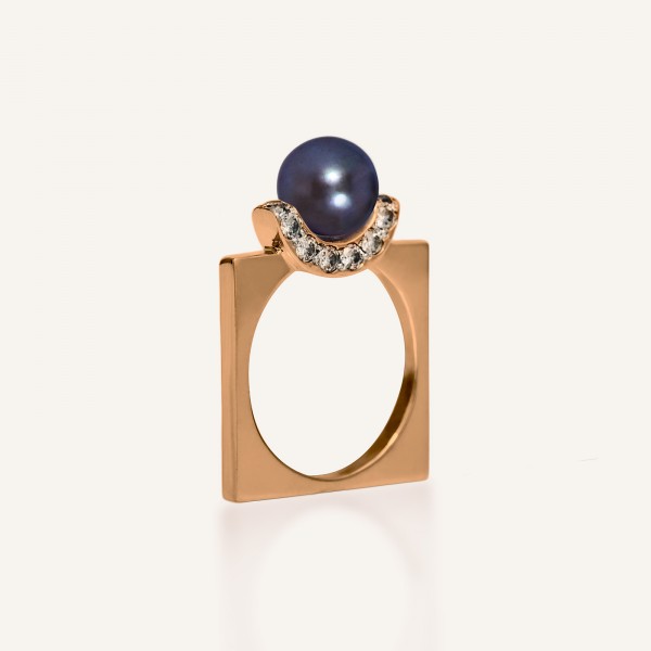 Лаконичный дизайн кольца, где главное – форма, всегда будет актуален, а жемчуг и дорожка из бриллиантов усиливают характер изделия своим блеском